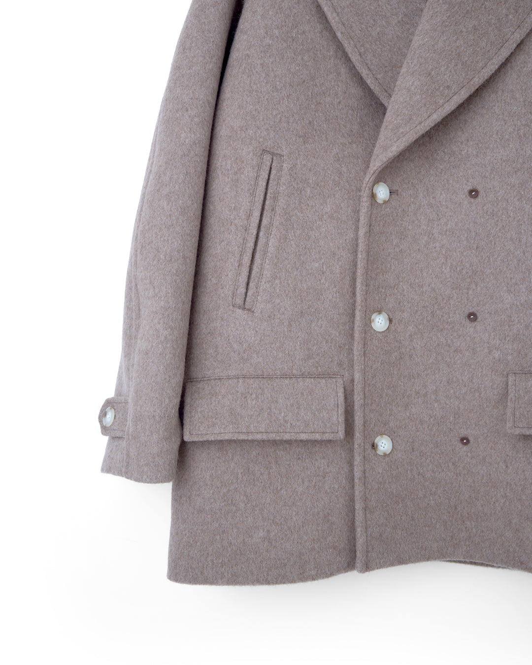 毎日、決まったものを着用している監督たちの姿が印象的で、製作に至った一着。 歴史あるコートを現代的にアップデートし、トップウール糸を使用した二重織ビーバー生地を採用。目付けを重くすることで深みのある質感と上質な保温性を持たせた。