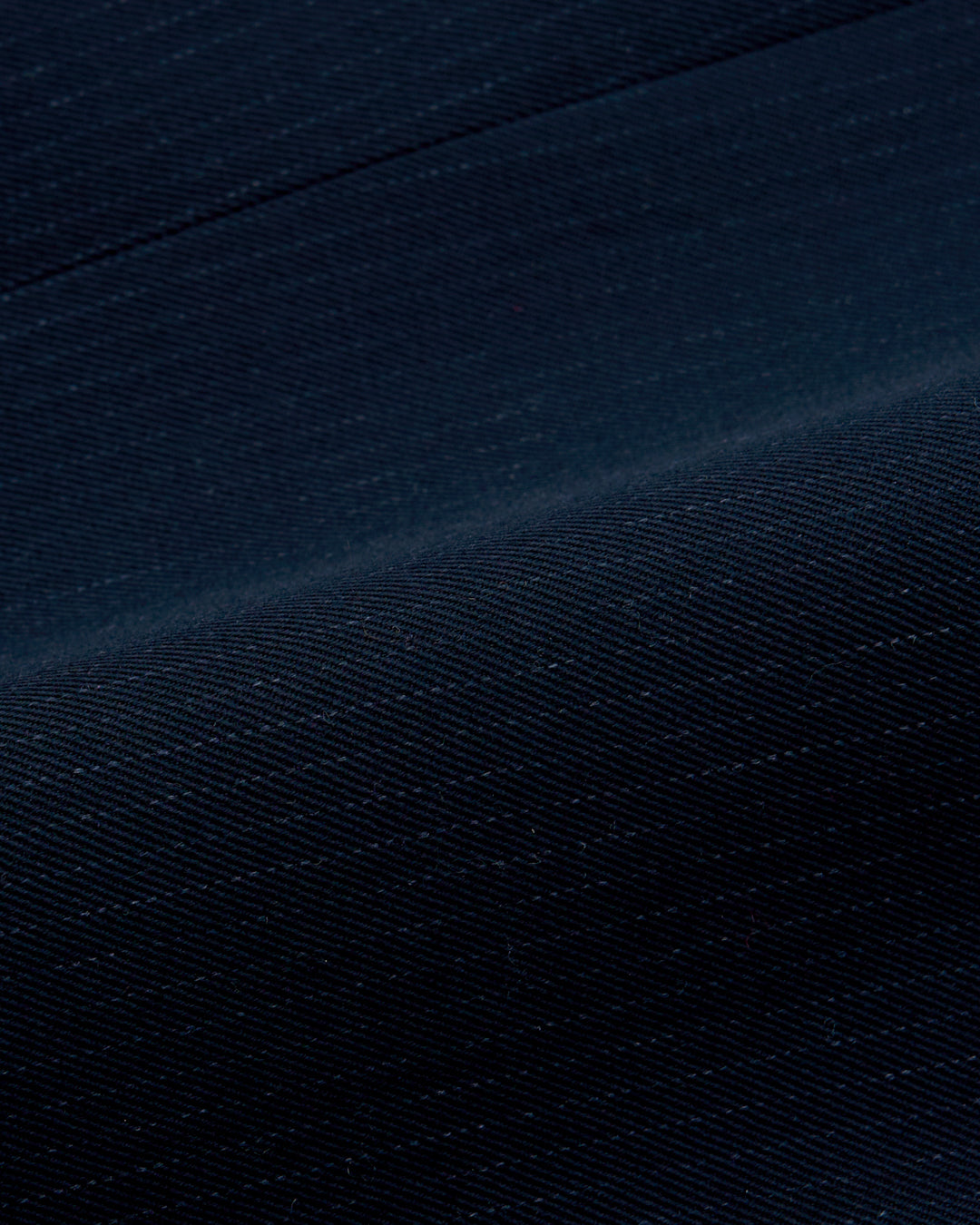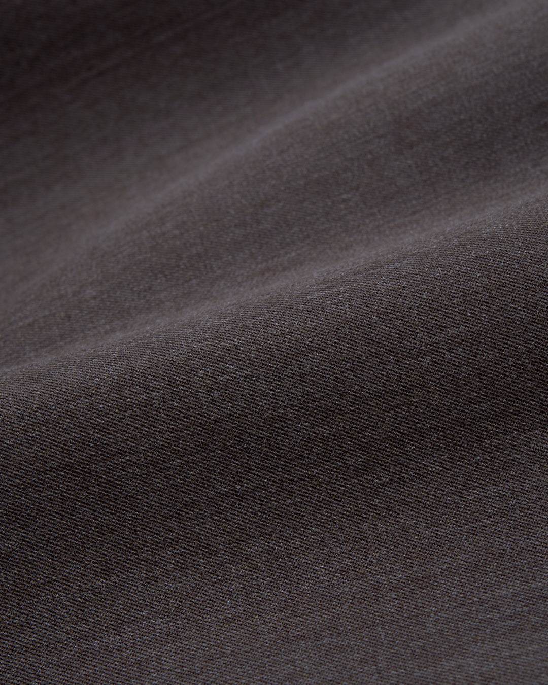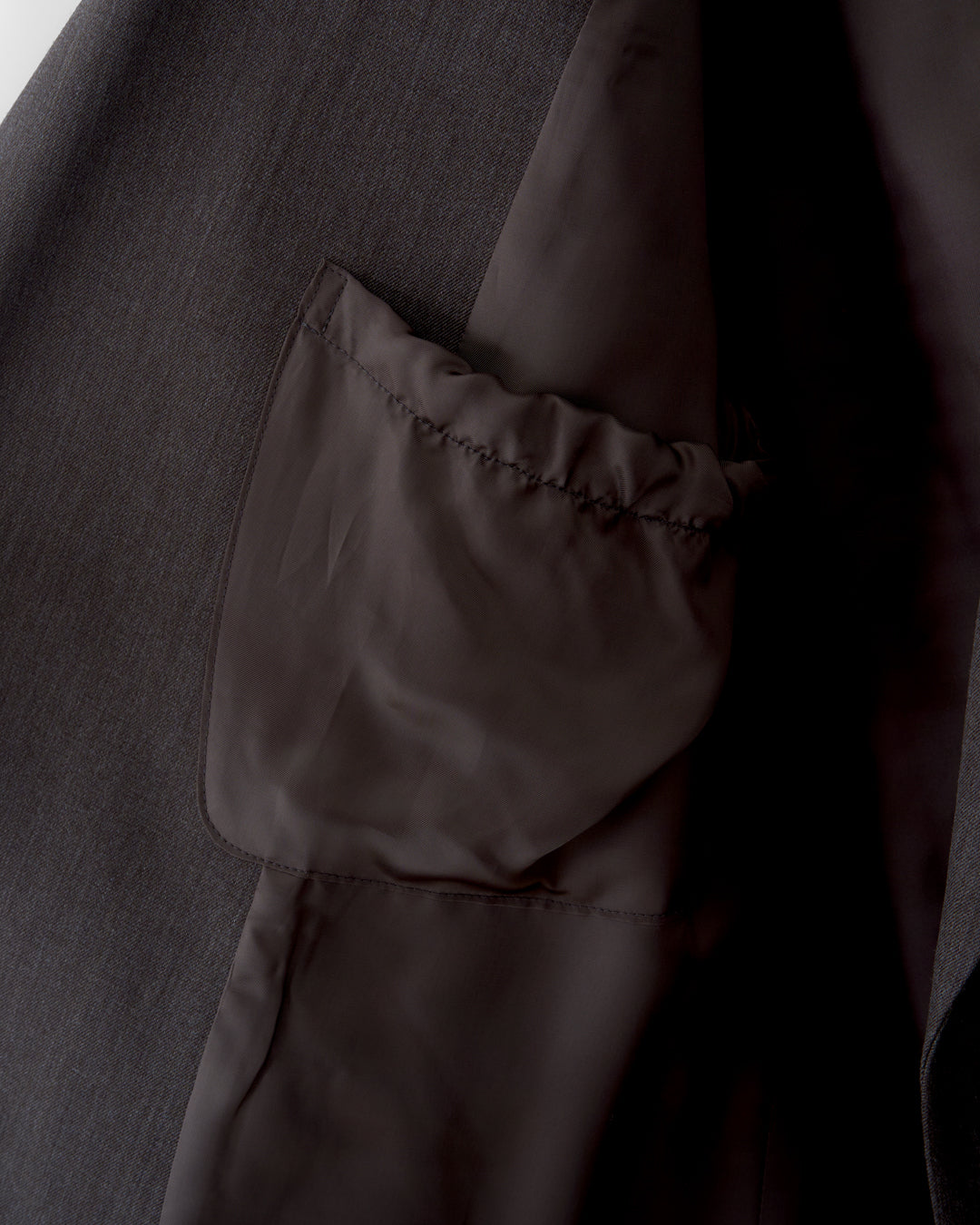 某歴史的ワークウェアブランドのストーリーをイメージしたダブルジャケット。 60/2ウール糸を高密度に織り上げ、ウレタン含浸加工を施すことで独特の反発感を持たせた。程よいハリとコシがあり、構築的なシルエットを引き立てる仕上がりに。