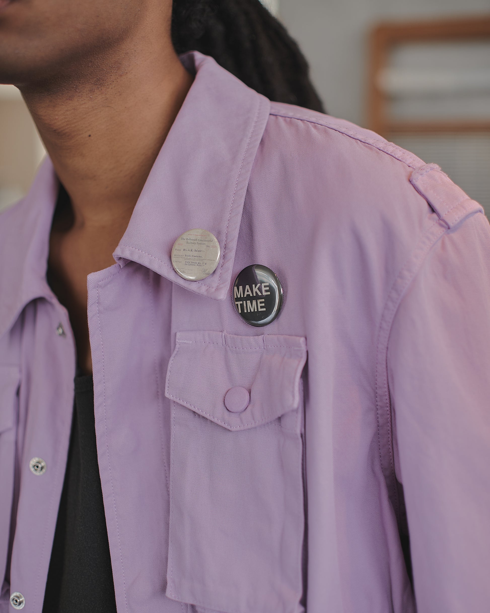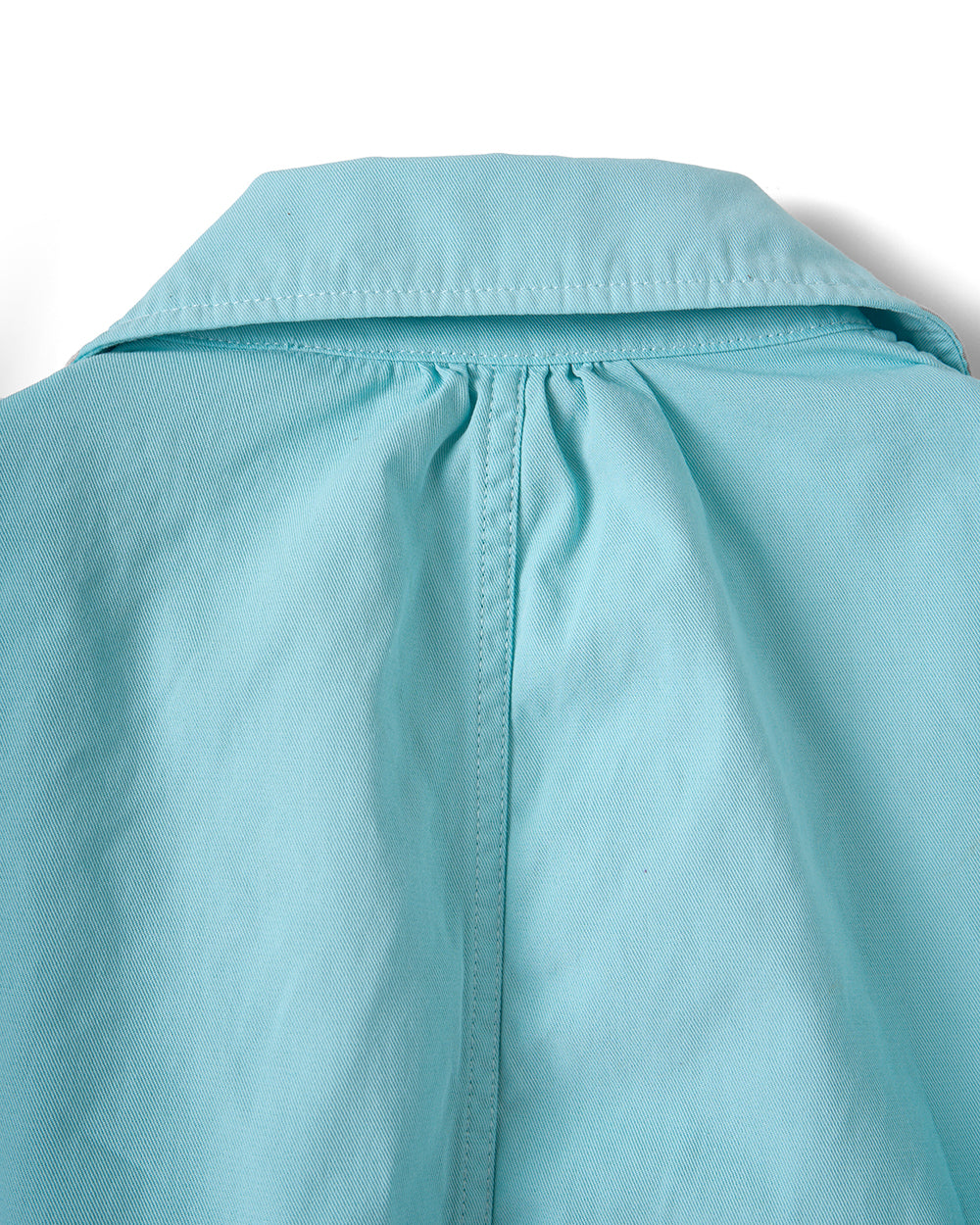 作業着の歴史をなぞりながらデザインされた一着。軍服から民間服、作業着へと変遷していった背景をミックスし、現代的にしています。素材には強撚コットンギャバを使用し、製品染めを施しています。着込むほどに風合いが増し、経年変化を楽しめるのも魅力のひとつ。共地のドットボタンが特徴的。洗い込むことで、より一層味わい深い表情に変化します。