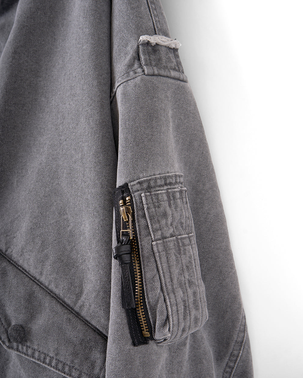 作業着の歴史をなぞりながらデザインされた一着。軍服から民間服、作業着へと変遷していった背景をミックスし、現代的にしています。素材は顔料加工を施したオックス素材。顔料を退色させる為にバイオウォッシュを施しています。着込むほどに風合いが増し、経年変化を楽しめるのも魅力のひとつ。小ぶりなフードが特徴的。洗い込むことで、より一層味わい深い表情に変化します。-Stockist-